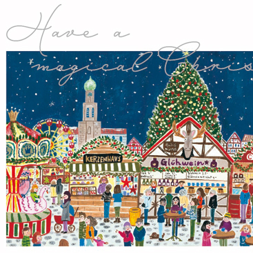 このホリデーシーズン限定の描き下ろしイラストのポストカードやクリスマスカード、